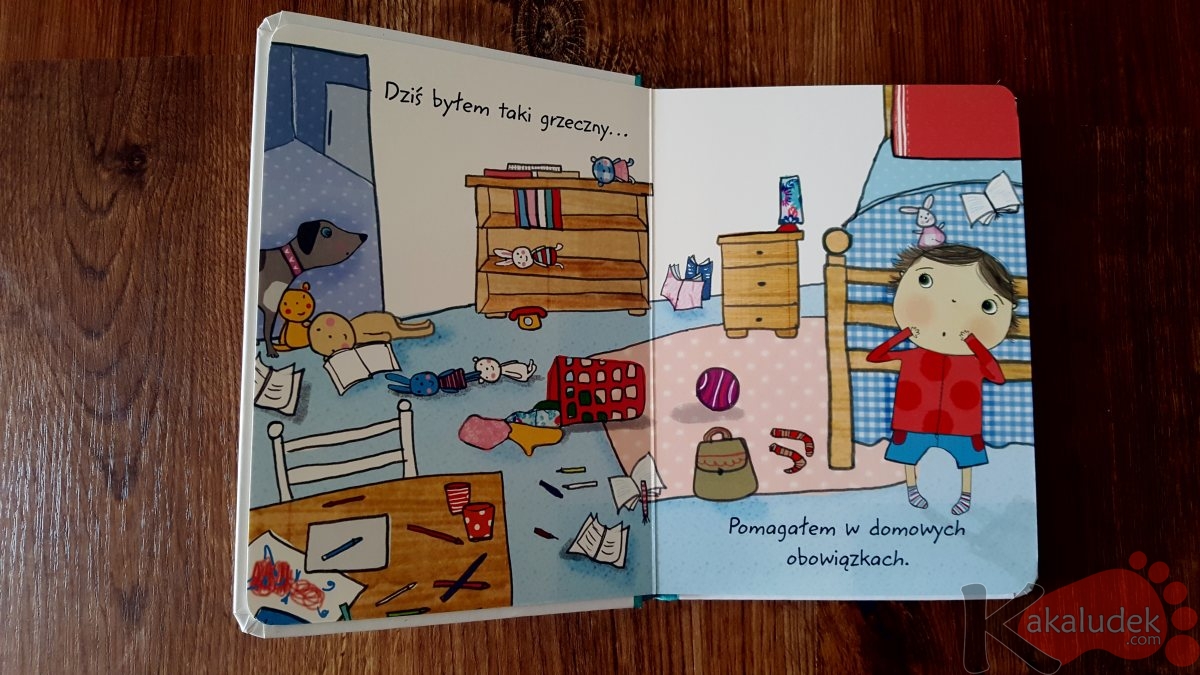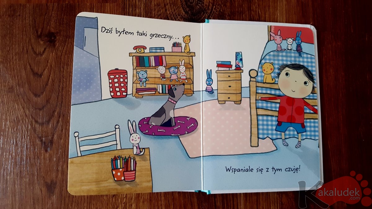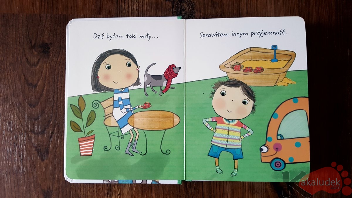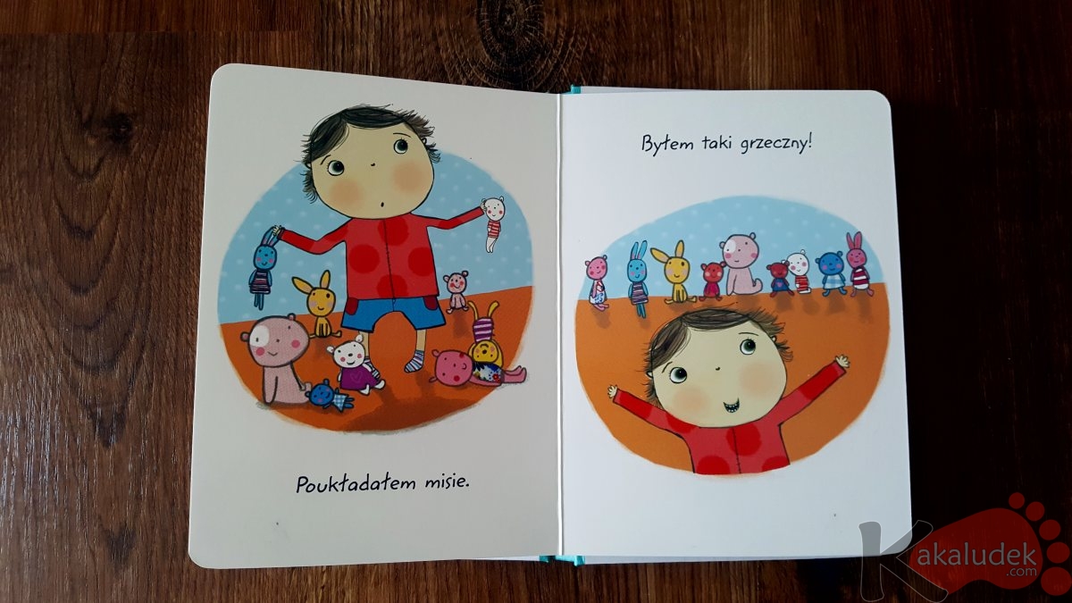 Proste książeczki o zachowaniu, których bohaterem jest mały chłopiec. Wydane w grubej, kartonowej oprawie i z przyjemnymi dla oka ilustracjami. Mogą stanowić świetny wstęp do rozmów o emocjach z dziećmi. Byłem taki grzeczny, dobry i miły od Olesiejuk dorwaliśmy na półkach w sieci sklepów Carrefour za jedyne 5zł!