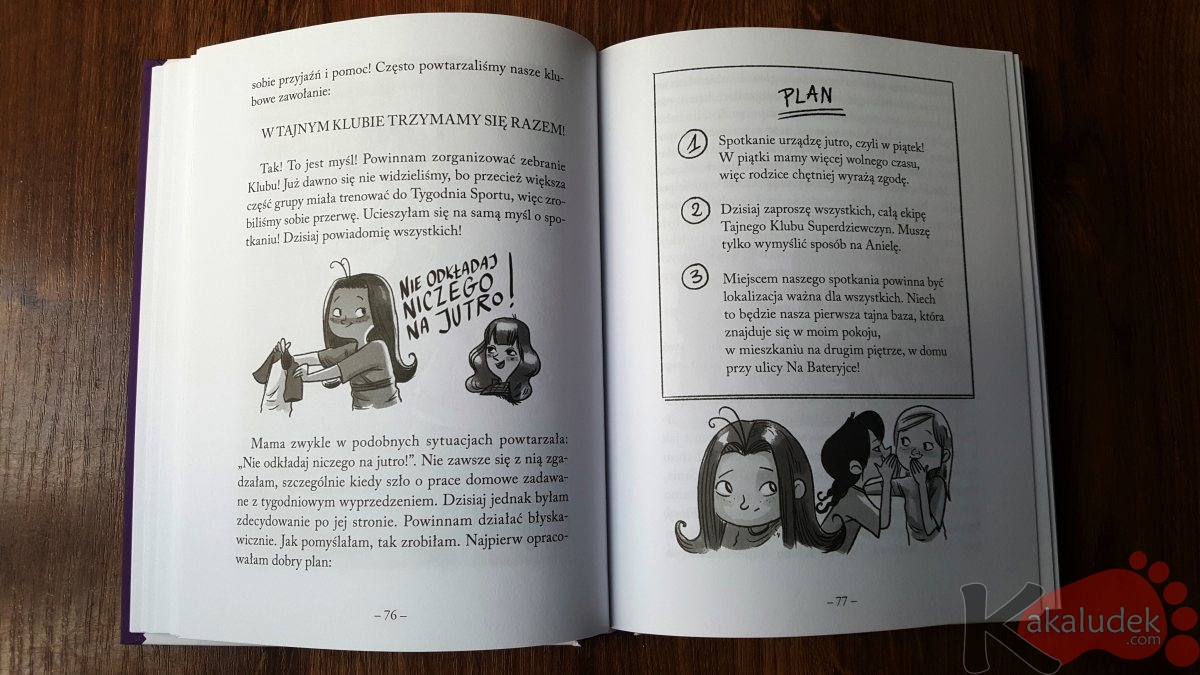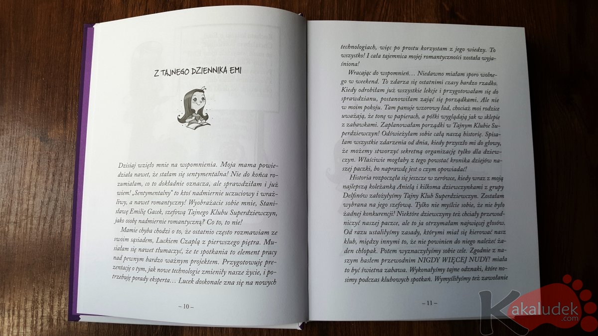 Pierwszoosobowa narracja w książce „Emi i Tajny Klub Superdziewczyn”, zbliżona trochę formą do pamiętnika bardzo przypadnie do gustu młodym czytelnikom. Na stronach znajdziecie również ładne ilustracje oraz różne grafiki.
