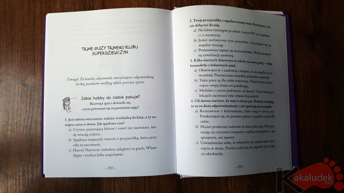 A na końcu książki znajdziecie Tajne Quizy Tajnego Klubu Superdziewczyn, które możecie sami rozwiązać po lekturze.