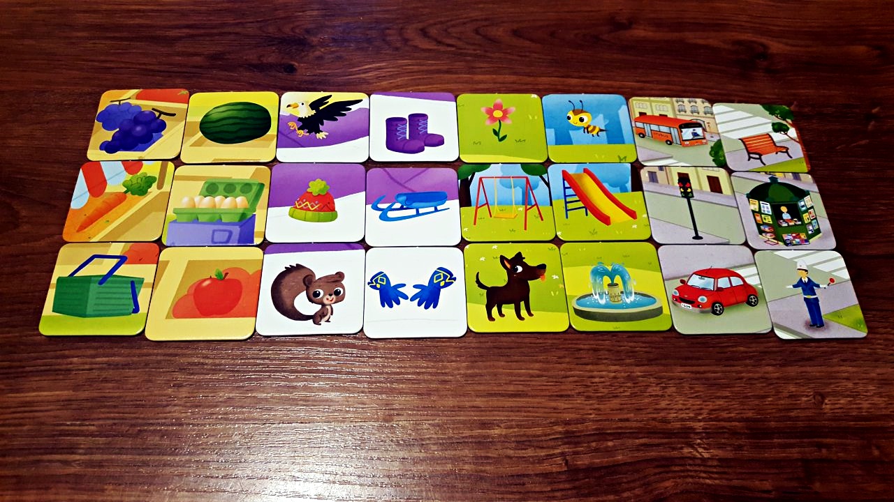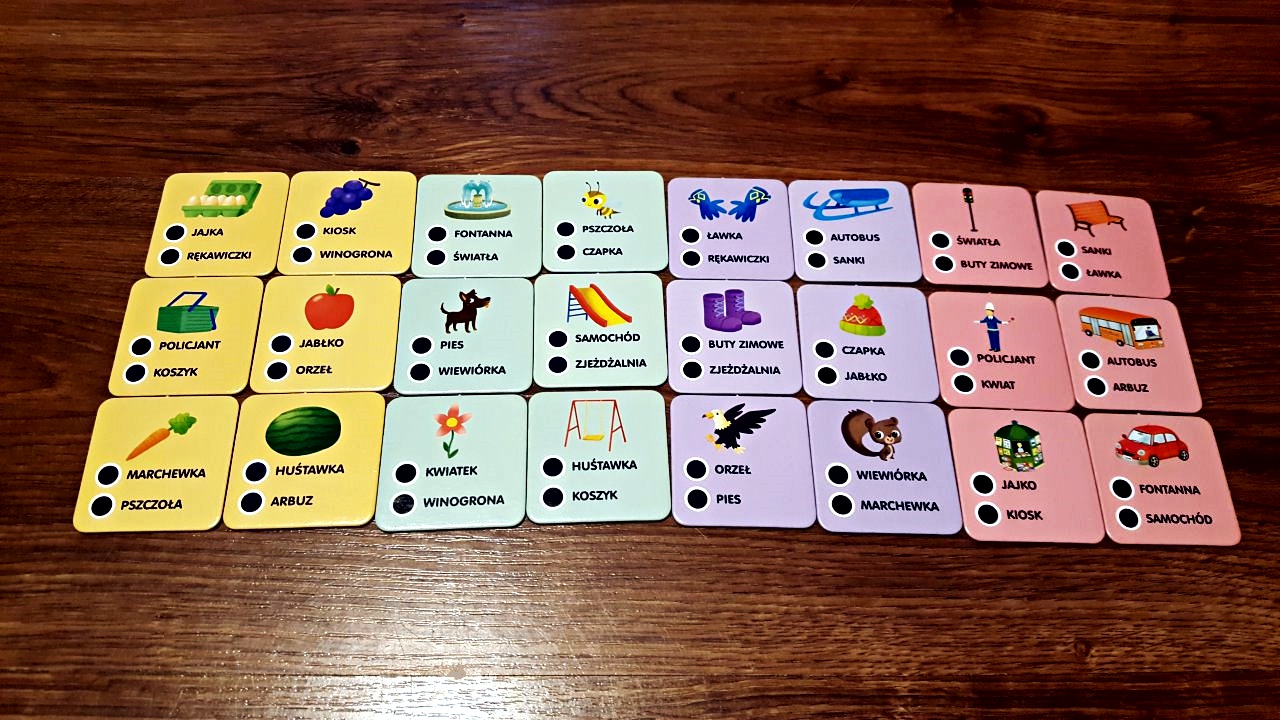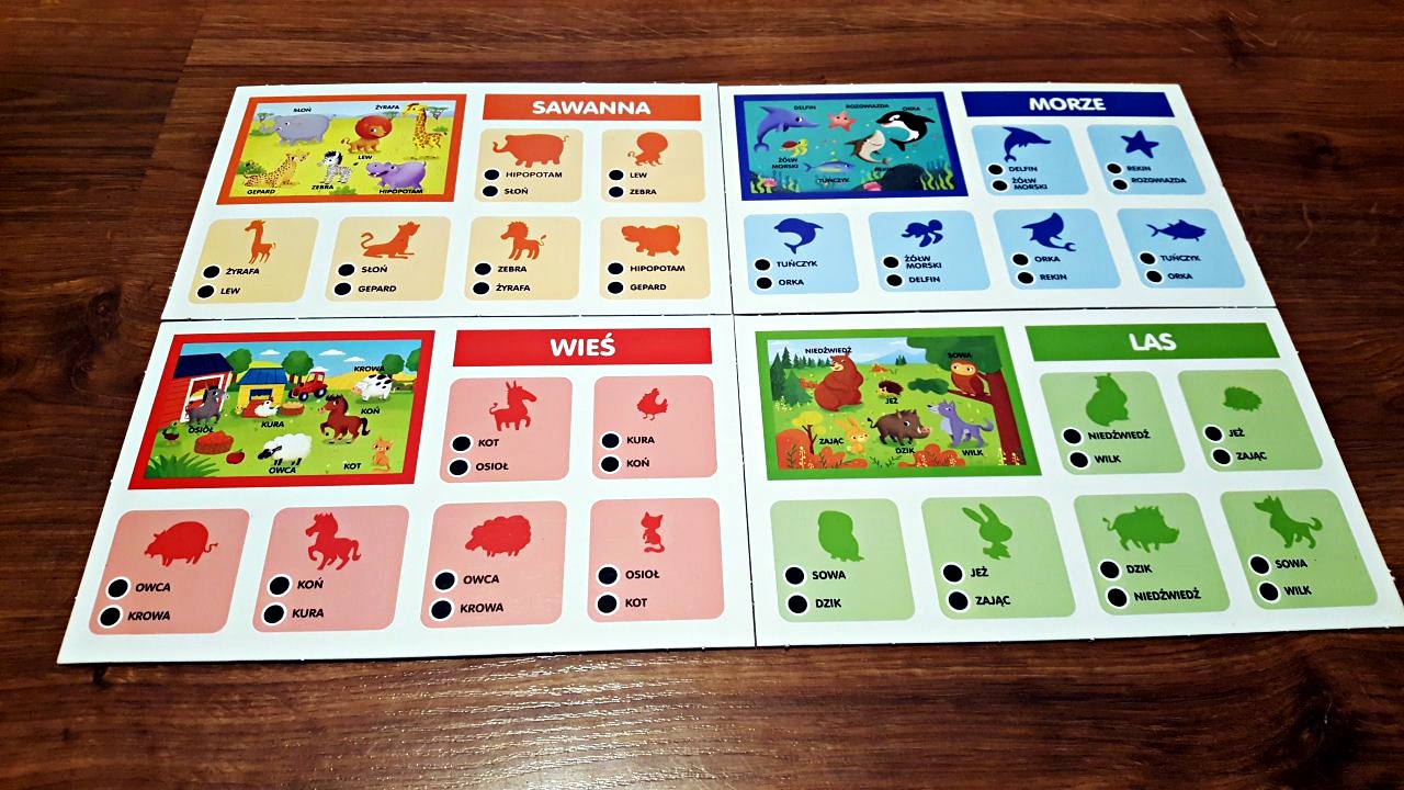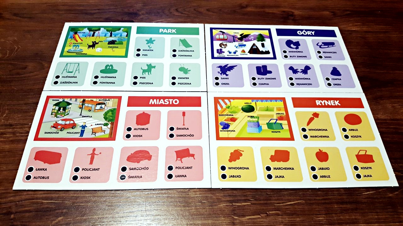 Każdy zestaw to aż 6 propozycji do wspólnej gry i zabawy – gra pamięciowa, quiz ze słowami, quiz z kształtami, quiz logiczny, super loteria oraz gra koncetracja.