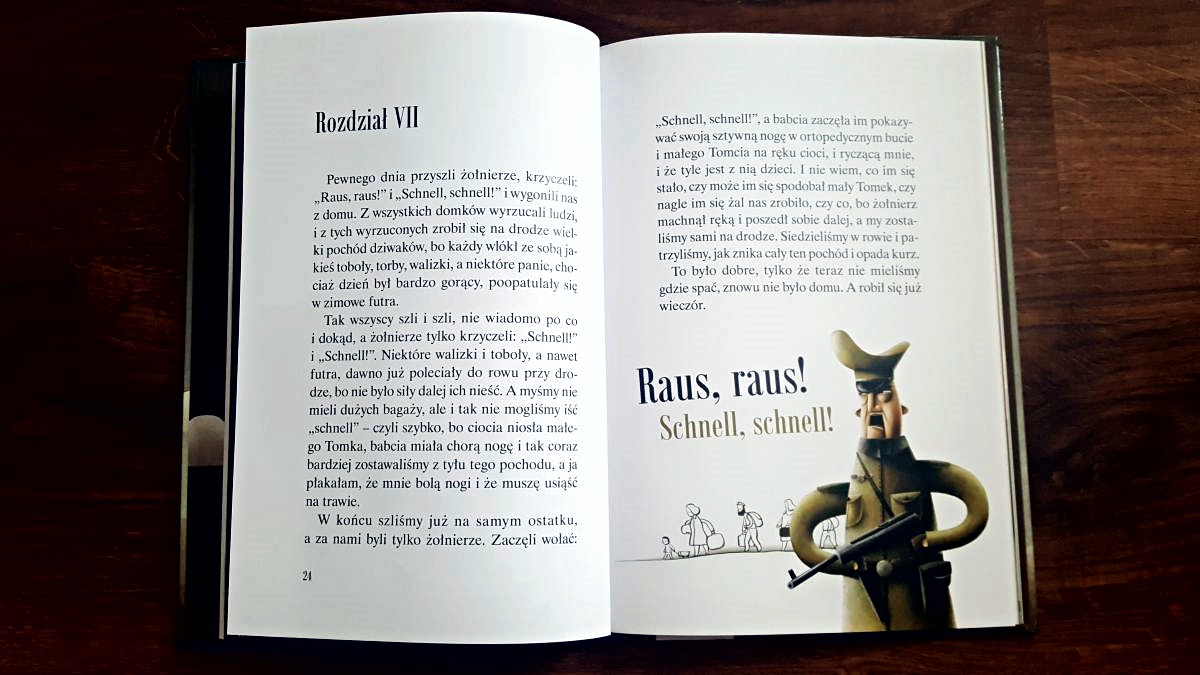Opis: Książka została wydana przy współpracy z Muzeum Powstania Warszawskiego na podstawie wspomnień autorki. Przedstawia II Wojnę Światową widzianą oczami dziecka. To historia małej Asiuni, która chwilę po swoich piątych urodzinach zostaje całkiem sama – bez mamy i domu, a wkoło trwa okrutna wojna.