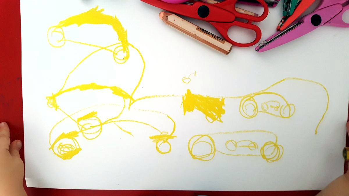 Poza rysowaniem swobodnym warto od czasu do czasu prosić dziecko o rysowanie celowe, np. narysuj koło, auto, las. Rysowanie na temat oraz umiejętność rozmieszczenia pracy na całej kartce, to rzeczy, które Twoje dziecko będzie rozwijało zarówno w przedszkolu jak i w szkole.