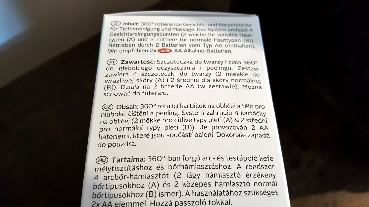 Jest bardzo prosta w użyciu – wystarczy założyć nakładkę ze szczotką i włączyć start. Dzięki dwóm załączonym do zestawu bateriom typu „paluszek” szczotka obraca się. Mycie twarzy jest delikatne i przyjemne, a skóra po nim porządnie oczyszczona. Bez suchych skórek i bez podrażnień. Znakomicie domywa resztki makijażu, z którym nie poradził sobie płyn micelarny czy inny tonik. Po całym zabiegu część myjącą wystraczy odczepić i wypłukać pod bieżącą wodą.