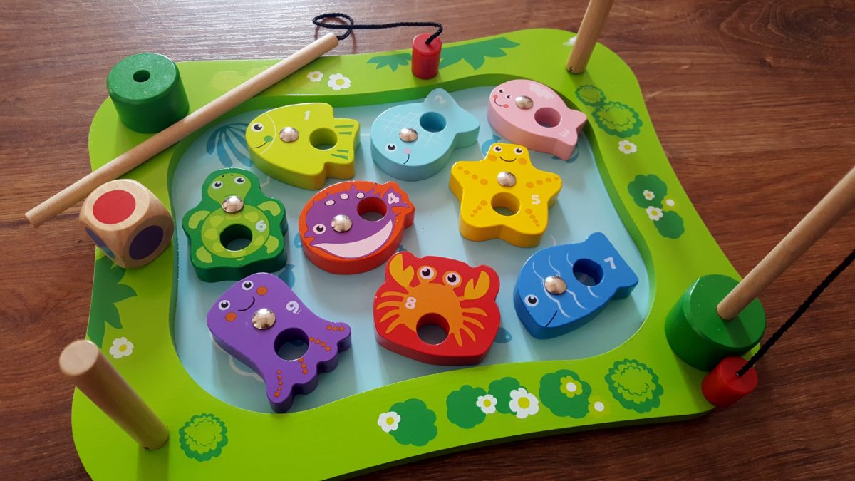 Drewniana gra w łowienie rybek „Kolorowe wędkowanie” od Smily Play, to świetna jakość w dobrej cenie. Zabawka rozwija zdolności motoryczne dzieci oraz uczy rozpoznawania kolorów i liczb, a to wszystko za 30zł! W zestawie poza dziewięcioma wodnymi stworzeniami do łowienia, znajdziecie dwie wędki oraz dużą kolorową kostkę.