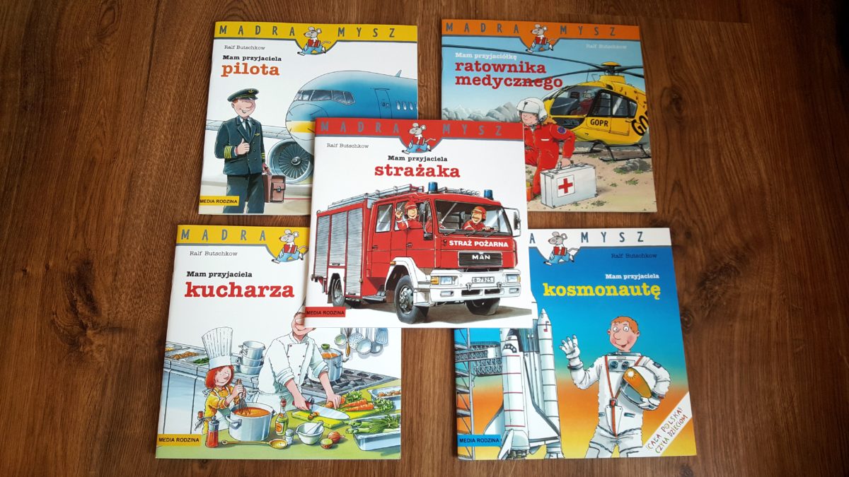 Seria „Mądra Mysz. Mam przyjaciela…” od Wydawnictwa Media Rodzina, to pozycja obowiązkowa w każdym domu. W tych cienkich książeczkach znajdziecie wyjątkowe, bardzo szczegółowe ilustracje – również pojazdów i maszyn w środku. Dokładne opisy przeróżnych zawodów zadowolą nawet najbardziej dociekliwe dzieci. A to wszystko za 4-5 zł za sztukę!
